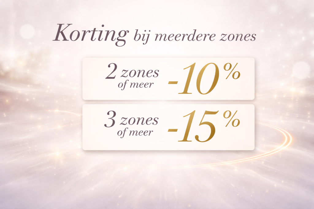 Wanneer je tijdens één afspraak meerdere zones laat behandelen, hanteren wij aangepaste tarieven:
